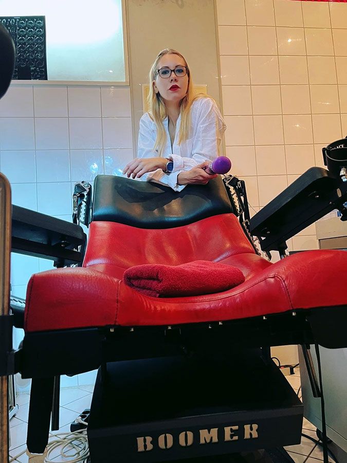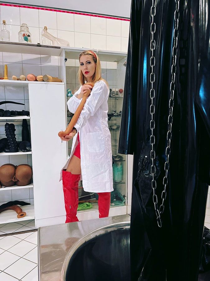 Willkommen bei Dr. Cora Champaign – erfahrene Bizarr-Ärztin für umfassende bizarre urologische und rektale Untersuchungen.