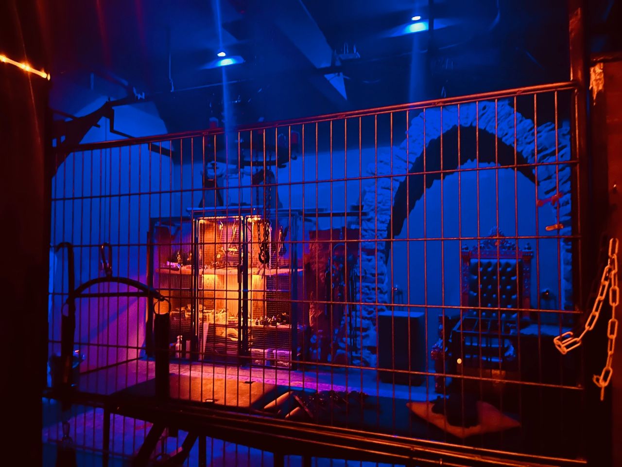 Der imposante Dominathron, die Streckbank, das Wasserbecken, die bespielbare Felsendusche, der Stehkäfig, Flaschenzüge, Käfige und der Durchgang zur "Ambulanz" bieten nahezu unendliche Momente für den Bizarrerotiker und den Langzeitgast.